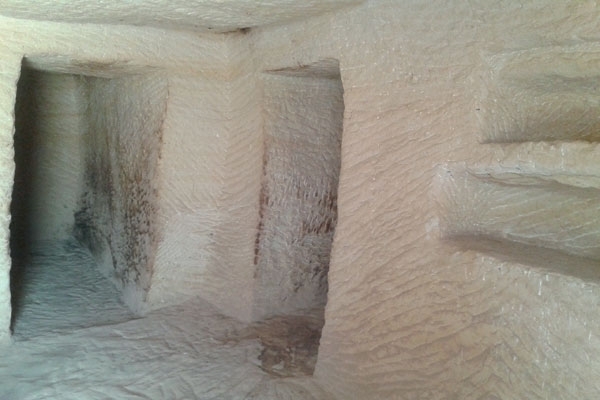 ويلاحظ أن هذا القبر لم يكتمل بناؤه، مما يشير إلى تقنيات الهندسة المعمارية التي كانت ترتكز إلى البناء من الأعلى إلى الأسفل، وتبدو الوردية على هذا المدخل طبقاً مزخرفاً يستخدم في المناسبات الدينية، مما يدل على أن هذه المباني قبور.