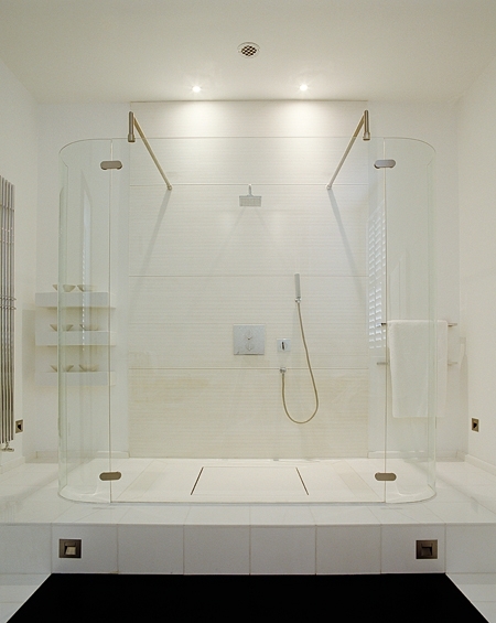 الحمام الرئيسي للغرفة يتميز بمساحة واسعة ومظهر ناصع البياض مصاغ بخطوط هندسية منحنية واضاءة ناعمة. وقد رصعت الأرضية الرخامية بالخشب الأسود بتشكيل باهر التأثير، اما الحنفيات والدوش، فقد تم صقلها لتضفي المزيد من الأناقة والألق على أجواء المكان. وبما ان التخزين امر مهم في الحمام فقد ابتكرت العديد من الخزائن تحت المغسلة، وذلك لترتيب المناشف وادوات الحمام.