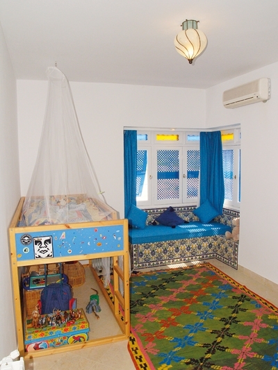 والفنّ المعماري التونسي حاضرٌ من خلال اللون الأزرق للنافذتين الكبيرتين.