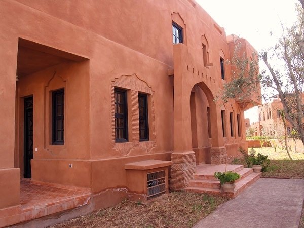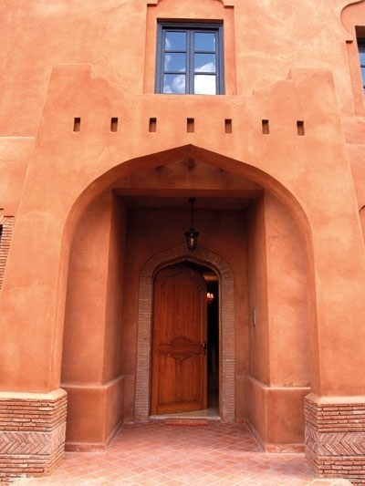 من الخارج، يشدنا اللون الرملي الذي اكتست به جدران القصر، وتجذبنا نوافذ متقاربة ذات هندسة متشابهة، وتومئ لنا قنطرة ضخمة بأن ندنو من الباب الرئيسي، كأننا نلج باب فندق فخم. ولكن مهلاً، قبل الإنتقال إلى الداخل، يحلو التأمّل قبالة الباب الرئيسي في الركائز الحجرية التي حملت سقوفاً من ألواح خشب متباعدة تتسلّل أشعة الشمس من فتحاتها.