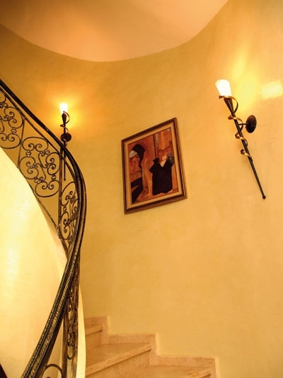 واللافت في الصالون المواجه لقاعة الإستقبال الفسيحة التي تفرّعت منها المداخل والدرج الذي يقود إلى الطبقة العلوية، الكوّات التي تطل بخفر من الجدار الفاصل بين الدرج وقاعة الجلوس، وقد تزيّنت بدورها بشموعٍ مضاءة.