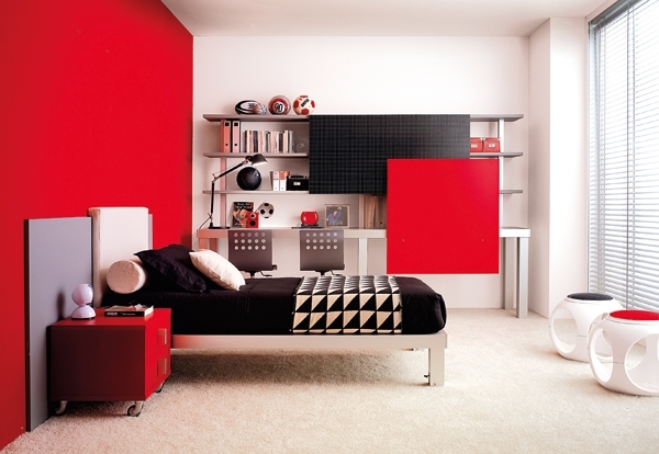 هل تساءلت يوماً عن سبب اختيار الأحمر لطلاء جدران المطاعم غالباً؟ في الواقع وجود الأحمر في الغرفة يزيد الشهية بشكل واضح، وقد يكون الاختيار الصائب لطلاء جدران غرفة الطعام لديك. كذلك لهذا اللون تأثير واضح على الكثير من الأشخاص إذ يلعب دوراً في رفع ضغط الدم وتسارع دقات القلب وتزويد الجسم الطاقة والنشاط. والأهم دوره في خلق جو حميم مفعم بالرومانسية في الغرفة التي يكون فيها. لهذا يعتبر اختياراً موفقاً لك في غرفة النوم.
