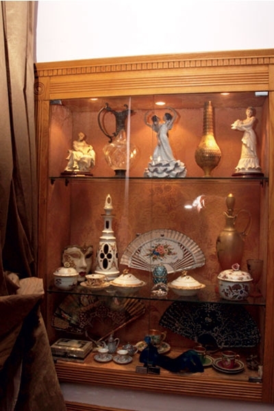 وقبل النظر إلى الأكسوارات لا بدّ من التوقف عند القيمة الأثرية لبعض الخزائن التي توزّعت في أرجاء الصالونات وخصوصاً في قاعة الاستقبال. إحداها مثلاً من الخشب المطعّم بالعاج وأخرى مرسومة بالريشة وكأنها لوحة زيتية. وقد ضمّت خزائن من الخشب والتي إنحفرت في قلب الجدار مجموعة من القطع الفاخرة من الكريستال والليموج.