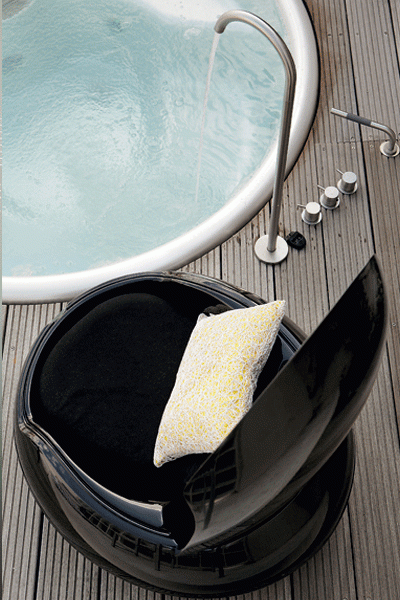 ودرة هذه الشقة، هي التراس الكبير الملحق بها. فقد غطيت ارضه بالواح من الخشب، ونسق بجلسات لطيفة وسط النباتات الطبيعية، وقد زين بعضها بوسائد من جلد الخراف. بينما تسللت الى اجواء الجلسة بعض المقاعد الصغيرة باشكالها البيضوية، وهي من تصميم هنغاري يعود تاريخها الى عام ١٩٦٨. وتوسطت بعض هذه الجلسات مناضد مبتكرة مصنوعة من جذوع شجر البلوط، يزينها شريط من الصفيح المتعرج.