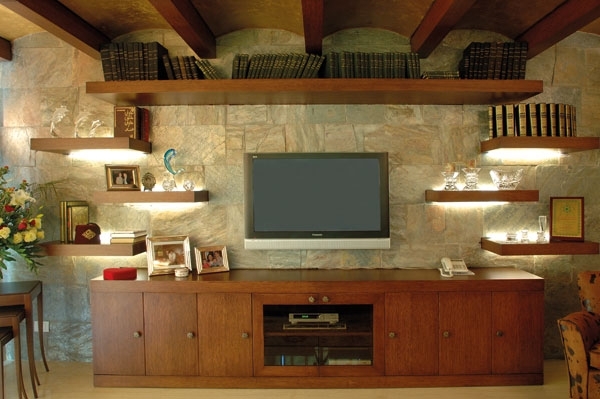 غرفة الجلوس العائلية إتسمت بالحميمة والألوان الدافئة، وحافظت في الوقت نفسه على رحابة المكان الذي بدا مضيئاً بفضل الواجهات الزجاجية الكبيرة. الكنبة الوثيرة متّصلة الأجزاء من البني والبيج والبوردو. الجدار المقابل تربّع في وسطه التلفزيون ولبس الحجر الهندي مضفياً دفئاً على المكان.