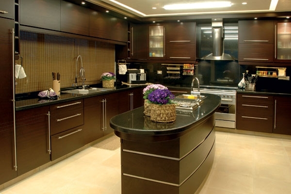 ولأنّ المطبخ جزء أساسي من أي بيت، وخصوصاً إذا كان يستضيف أناساً كثراً، فقد اعتنى المهندس فرّان بتصميم أجزائه كأنّه يرسم لوحة بلون الخشب الداكن والذي تطعّم بأكسسوارات من الكروم.