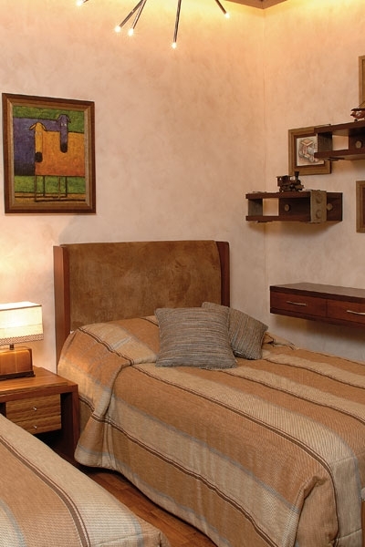 الأجواء الإنكليزية نفسها إنتقلت إلى بقية الغرف التي غلبت عليها الألوان الدافئة مع تصميم بسيط للأسرة.