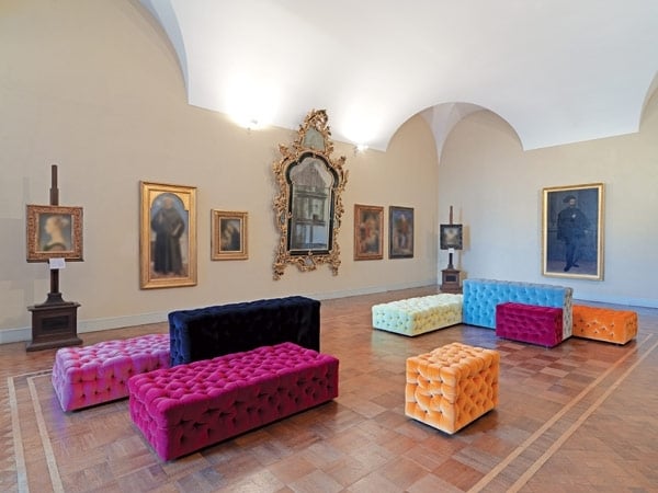 وعلى المنوال نفسه صمم الأسباني «خايمه هايون» أرائك منجدة من الجلد و«البوليتيلين» باللون الأزرق الملكي،الأحمر الصاخب، بتأثير مدهش أنيق وغير عادي.