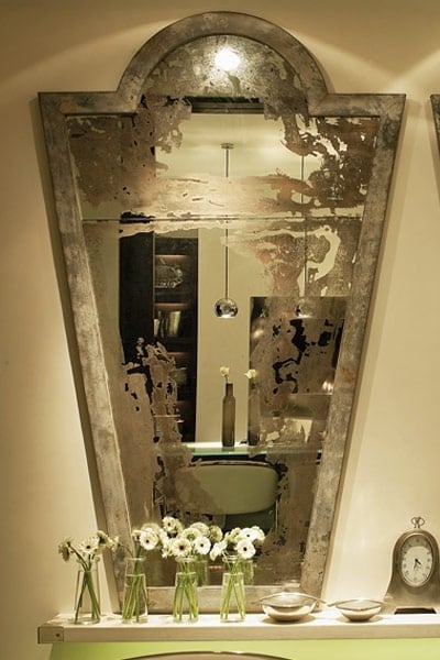 ويتميز هذا المطبخ الذي نفذته شركة Boffi المتخصصة في صنع المطابخ، بخزائنه الأنيقة المصنوعة من الخشب المطلي باللون البني اللامع والتي نسقت بشكل عملي مدهش، لتحتل المساحة عند جانبي الممر المؤدي الى غرفة الطعام، مشكلة بذلك وحدة مركزية يندمج فيها الفرن والبرادات وغيرها من مستلزمات المطبخ. بينما تتوسط في جانب آخر من المكان وحدة الطهو، مدمجة مع مسطح عمل بالغ الاتساع، وزعت حوله بعض الكراسي المرتفعة المصنوعة من معدن الأينوكس والمغطاة بجلد أبيض اللون. تتعدد مصادر الإضاءة في المطبخ فبعضها مباشر يأتي من السقف وآخر ينبعث من اماكن خفية، لخلق المزيد من التأثير الجميل. أما بالنسبة إلى إضاءة المسطح، فهي تأتي مباشرة من مصابيح تتدلى من السقف بأشكال كروية معدنية، تحمل بمظهرها ملامح من أجواء سبعينات القرن الماضي.