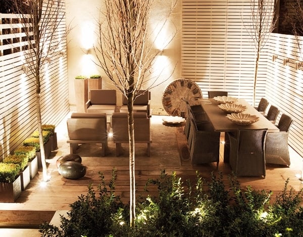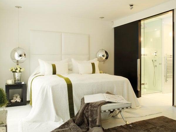 غرفة الضيوف تحتل مكانها في الطبقة السفلية من المنزل المطلة على الحديقة، وهي من الغرف المظلمة التي لا تدخلها الشمس طوال النهار. اكتست باللون الأبيض من أرضيتها حتى سقفها، وذلك لإعطائها طابعاً مشرقاً. كما زخرفت بخيارات أنيقة من قطع الأثاث الكلاسيكي الجميل المغطى بقماش الكتان أو الجلد الأبيض، مع لمسة بسيطة من اللون الأخضر الذي زين غطاء السرير والوسائد. وكان للون البني الداكن أيضاً حضوره الناعم الجميل من خلال بعض قطع الأثاث، مثل خزانة الملابس والمناضد الصغيرة التي أحاطت بجانبي السرير، والتي تدلت فوقها من السقف مصابيح كروية الشكل من المعدن تحمل في ملامحها نفحة من أجواء سبعينات العصر الماضي. الحديقة الخلفية للمنزل تتمتع بهندسة أنيقة مثيرة للإعجاب، بأجوائها الجميلة التي ابتكرها مهندس الحدائق المشهور كريس موس. وقد ساهمت كيلي هوبن في استكمال زخرفتها ببعض من أثاث الهواء الطلق والأكسسوارات اللازمة للإضاءة والزينة، محولة المكان الى استراحة جميلة تدعو للإسترخاء والتأمل.