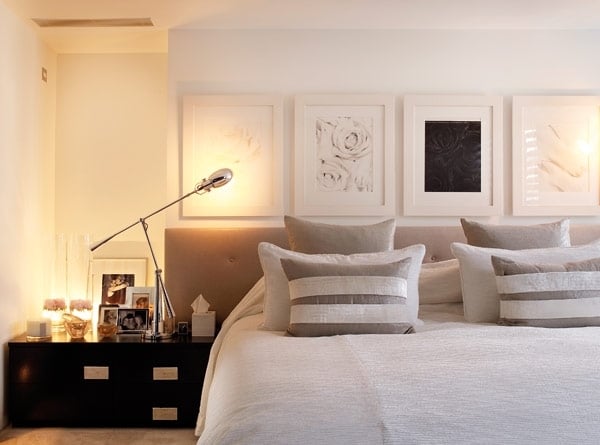 لم تهمل كيلي السلالم التي تربط بين بعض مستويات الغرف في المنزل، فلبست حواجزها بمعدن الأينوكس، كما غطت درجاتها بسجاد من المخمل الرمادي الناعم.غرفة النوم الرئيسية تنبسط فوق مساحة واسعة في الطبقة الأولى. تمحورت زخرفتها حول أحلام «كيلي هوبن» وميلها الشديد إلى الترف، فجاء تصميمها مدهشا فاخراً. تصدر الغرفة سرير كبير برأس منخفض من اللون الرمادي الناعم، وقد صُفت فوقه مجموعة من اللوحات الزخرفية البسيطة والمنفذة بتنوعات من اللون الأبيض والرمادي الفاتح والغامق... الوان تتماشى مع غطاء السرير ووسائده الرمادية والبيضاء المزخرفة.كما نُسقت عند جانبي السرير مناضد منخفضة من الخشب البني الداكن، زينت بعناصر للأضاءة، وبعض الأكسسوارات الزخرفية والصور العائلية. وتتناغم هذه المناضد مع قطع الأثاث البني، الموزع في أركان مختلفة من الغرفة، بينها «كونسول» أنيق زين سطحه بالتحف الصغيرة والبراويز والصور الفوتوغرافية االتي تتصدرها صورة فنية مميزة للممثلة الأميركية الراحلة «مارلين مونرو» بالأبيض والأسود. الحمام الرئيسي للغرفة، يتميز بمساحة واسعة ومظهر أنيق، يغلب عليه اللون الأبيض. وقد رصعت أرضيته الرخامية البيضاء بممر من الخشب البني الداكن، مما أضفى على المكان رونقاً بالغ الألق.