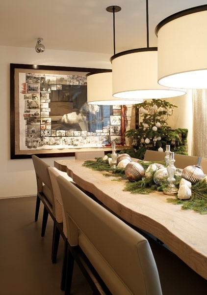 صالة الطعام صغيرة ومدهشة، بطاولتها المصاغة من جذع شجرة سنديان والتي صُقلت بمعالجة مميزة للحفاظ على لونها الطبيعي ومظهرها. وقد أحيطت هذه الطاولة بمقاعد ابتكرت خصيصاً لها، من الخشب البني الملبس بالجلد الأبيض والرمادي الفاتح. وقد تدلى من السقف فوق الطاولة مصابيح مميزة من اللونين الأبيض والأسود من إبتكار المصمم كيفين رييي، وهي تضفي على المكان لمسة غير تقليدية. وتكمل المشهد الزخرفي لصالة الطعام لوحة كبيرة تزين الجدار، مزخرفة بملصقات من الصور تحمل توقيع المصور الفوتوغرافي الشهير بيتر بيرد.الصالون يشغل مساحة واسعة من الدور الأول، ويتميز بطابعه الزخرفي المستعاد من أجواء ثلاثينات وسبعينات القرن الماضي. نسق بجلسات مختلفة، بينها ركن المدفأة الذي تتوسطه طاولة مثلثة الشكل من الخشب المطلي باللون البني اللامع، يعلوها لوح من الزجاج بلون متناسق. وتتكامل مع هذه الجلسة كنبة وثيرة ملبسة بقماش من اللون البني المدمسق ومقعدين آخرين ابتاعتهما من سوق البرغوت لتلبسهما القماش ذاته.. ويزين هذه المقاعد مجموعة من الوسائد المخملية المربعة باللونين البني الفاتح والغامق..