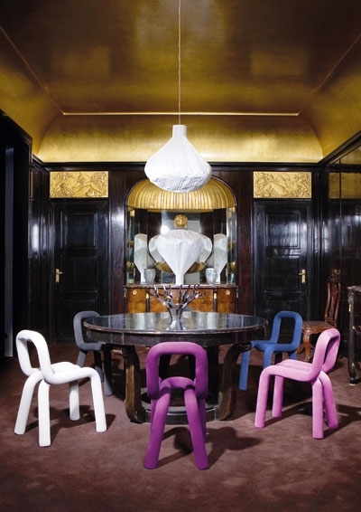 وتتميز مجموعتها بألوان جميلة من الرمادي والخوخي والزهري والأسود والكحلي، ويمكن دمج هذا الكرسي الطريف الشكل في أجواء تقليدية رصينة للمزيد من التأثير والغرابة.