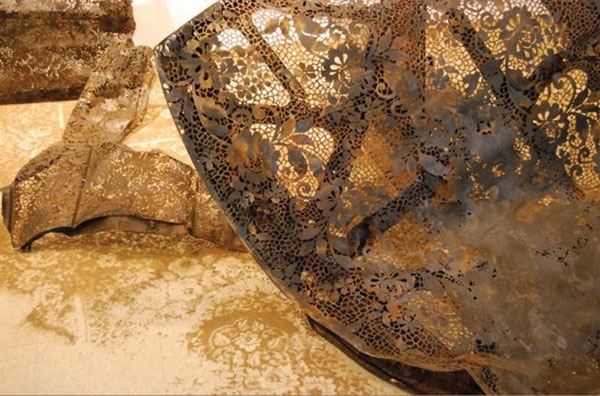 واذا كان العديد من المصممين ذهبوا بابداعهم نحو اثراء اجواء المنازل الداخلية بهذه الأنماط من الابداع، فان الفنانة الكندية Cal Lane سارت في اتجاه آخر لتغذي بمبتكراتها وتحفها الفنية العديد من المتاحف وصالات المعارض العالمية من خلال نماذج غير مسبوقة من العربات والمعاول والمنحوتات المختلفة الأشكال المنفذة من المعدن الصلب على نمط مشغولات الدانتيل، غير انها تبقيها في حالتها الأصلية الخام بلا طلاء.