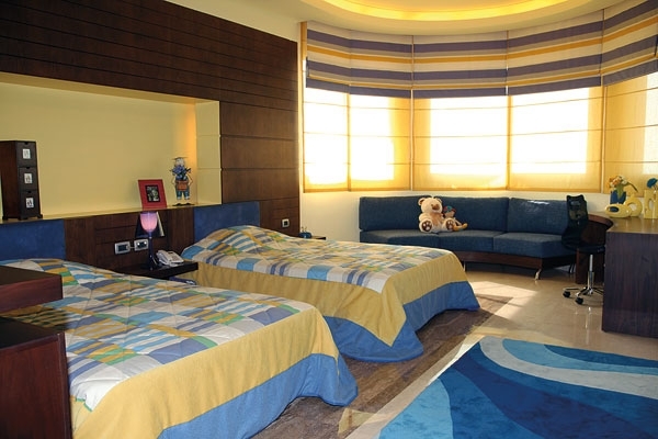 لكلّ غرفة لونها ونكهتها الخاصة. واحدةٌ حمراء وثانيةٌ زرقاء مخصصةٌ للصبيان، وإلى جانبها حمامٌ توشّى بالأزرق، وثالثةٌ ورابعةٌ طغى عليهما اللون الزهر، إلى حانبهما حمامٌ اكتسى الزهر أيضاً.