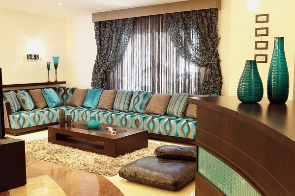 أما الثاني فلا يقلّ روعة بمقاعده الثلاثة الوثيرة الزهرية والبنية، وفي الوسط طاولة خشب متناسقة مع لون الأثاث. ولمزيد من التفنن، تدلّت من السقف أربعة مصابيح تضفي على المكان الحميمية المطلوبة.