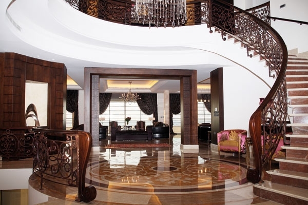 توزّعت التصاميم الهندسية اللافتة في أرجاء ثلاث طبقات من ألف متر مربع، كأنها من قصص ألف ليلة وليلة. في مرتبة وسطى بين الكلاسيكية والعصرية يصنّف هذا المنزل، فيأخذ من الكلاسيكية هيبتها ومن العصرية أناقتها وراحتها.