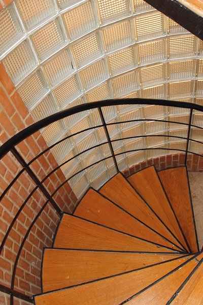 درج دائري إطاره من الحديد الأسود يقود إلى الطبقة العلوية حيث المطبخ. كما يوصل رواق مستطيل إلى الجناح الآخر من المنزل، المخصّص لغرف النوم. هذا الرواق يحّده الزجاج من كلّ الاتجاهات، وقد استغلّت مساحته لوضع بعض المقاعد الوثيرة بلونها الأبيض الزاهي، والتي تزّينت بغطاء من القماش المقلّم باللونين الأبيض والأسود. ومن هذا المكان المرتفع يمكن التمتّع بمنظر الطبيعة صيفاً وشتاءً، ففي الشتاء يحلو لأهل المنزل الإستمتاع برؤية الثلج يتساقط، وفي الصيف يمكن التأمّل في الشتول والزهور وحتى الصخور التي نحتها الخالق هنا وهناك.
