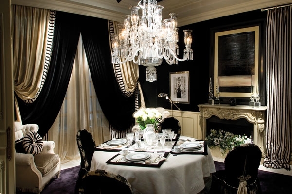 ففي صالة الطعام مثلاً يمكن إضافة عنصر زينة من اللون الذهبي فوق طاولة من الخشب البني أو الأسود، أو شمعدانات وإناء زهر في وسط الطاولة. وللعب ورقة البساطة، يمكن عندها استخدام أدوات من فنون المائدة بسيطة الشكل ناعمة الألوان.