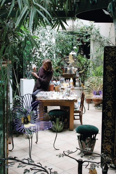 كراسي وطاولات وحواجز زخرفية، من معادن مطوعة أو ملبسة بأوراق الذهب. بأسلوب بارع ومتفرد يمنح لهذه الأشياء طابعها اللازمني. على أن الأمر الأكثر إدهاشاً في أعمال هذه الفنانة الفرنسية هو التنوع الباذخ في إستخدام المواد.