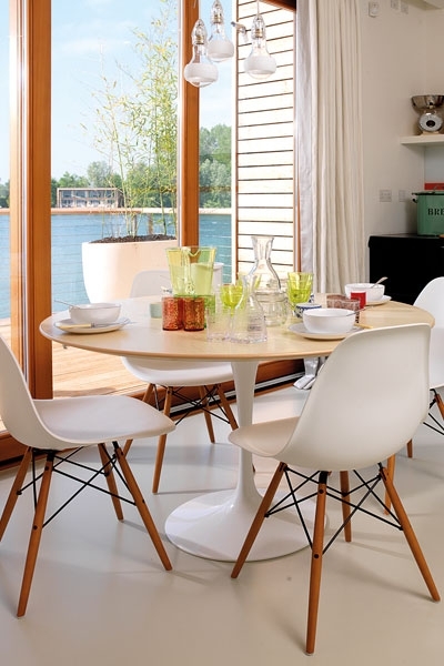 ولإضفاء حيوية ودينامية مستدامة على داخل المنزل، لم تتوانَ عن تخصيص ركن لمشاهدة التلفزيون في المطبخ. بينما اختارت لصالة الطعام طاولة خشبية كبيرة مطلية باللون الأبيض، تحيط بها مجموعة من الكراسي المتناسقة.