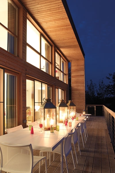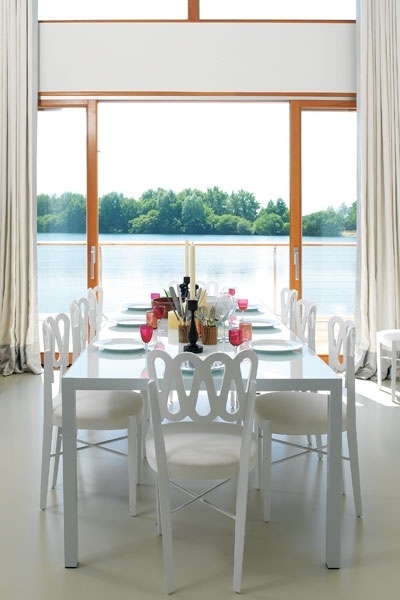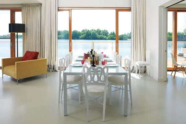 وهذا ما حاولت جايد جاغر تأكيده من خلال تصميمها لهذا المنزل الذي يتألف من طبقتين بمساحة 450 مترا مربعا، حيث سقف المدخل يرتفع الى المستويين ويؤدي الى صالة للاستقبال بمساحة مفتوحة على ما حولها من مطبخ وصالة للجلوس وشرفة واسعة مطلة على البحيرة.