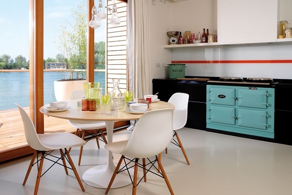فهي لم تتردد في اختيار اللون الأزرق السماوي لجهاز الطهو في المطبخ، مما ولد حيوية صادمة مع لون الخزائن المحيطة البيضاء ومسطحات العمل وإعداد الطعام حيث عولجت باللون الأسود.