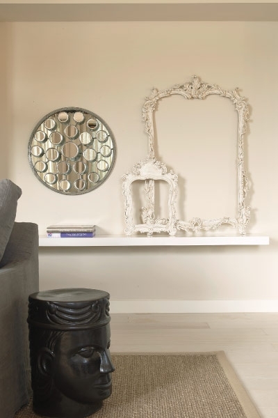 استخدمت كيلي في عملها على هذا المنزل المرايا بأشكالها الدائرية أو المستطيلة، في خيارات مدروسة بدقة لأمكنتها، وذلك لخلق شعور بالعمق في ظل ابعاد المكان والوانه الصافية المحايدة.