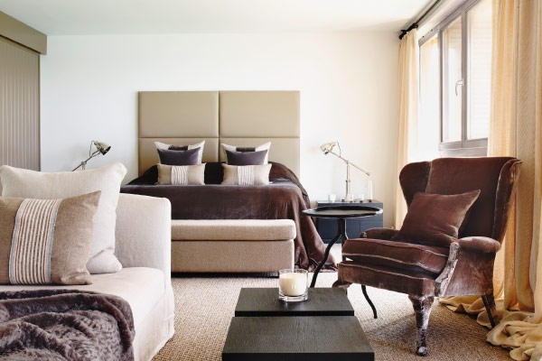 ولكنها لم تتوان عن إستخدام البني الداكن، أيضاً، لتوليد صدام دراماتيكي جميل، تتواجه من خلاله عناصر الديكور وأقمشته المتناقضة الفاخرة. فهي هنا بصدد رسم معالم جديدة لأناقة لا مثيل لها.