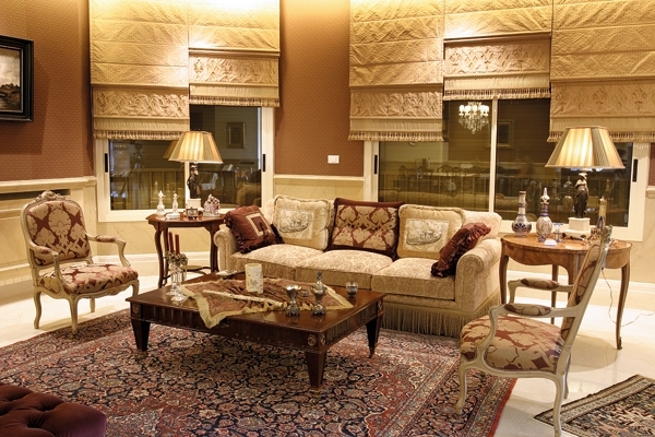 «منزل شيك» توزعت فيه أعمال تعكس البهجة والفرح من خلال إغناء المساحات الثابتة من جدران وأسقف، فيما بدت قطع الأثاث والمفروشات والاكسسوارات مميزة ونفيسة تتناغم لتحكي تاريخا أرستقراطيا ساحر الأجواء.