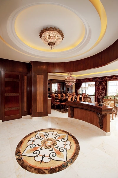وتبرز هذه الصالونات مفعمة بلمسات تعكس الطراز الكلاسيكي بقوة ولا سيما في استعمال مواد الحجر والرخام والنحت.