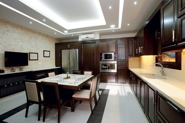 أما المطبخ فهو عصري يبرز فيه خشب الجوز واختيار الخطوط التقليدية مع اجهزة ذات تقنية عالية تهدف الى توفير راحة مطلقة في كل استعمالاته.
