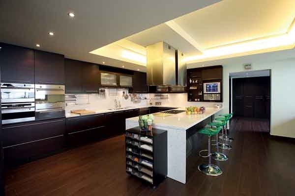 لوحة زيتية كبيرة شغلت الحائط الذي يوصل إلى الباب الزجاج الفاصل بين قاعات الاستقبال والمطبخ الذي طغى عليه الخشب ال«وينغي» الداكن، وضمّ صالوناً وقاعة للقراءة، فيها مكتبة كبيرة ضمّت مجموعة من كتب الطبخ العالمية تمضي فيها المالكة بعض الوقت لتصفّح الوصفات لتطبيقها، وهي تستمع بالموسيقى المنبعثة من كلّ أرجاء المطبخ المزوّد أحدث تقنيات ال «surround system».