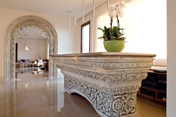 وكان اهتمام فرنسيس منصباً على عدم إبراز كل ركن على حدة ليكون المنزل متجانساً في محتوياته ومتواصلاً بالأعمال المميزة، لذلك توزعت فيه القطع الشرقية القديمة، من قطع رخامية وأحجار مزركشة-وهي تشكل هواية المالك- بطريقة هندسية فريدة مع العمل على عدم إبرازها بقوة بل على نحو هادئ.