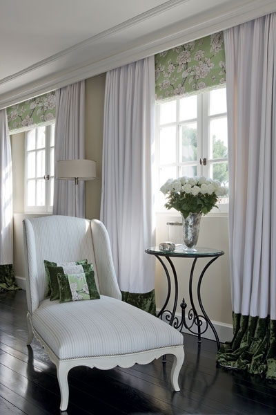 وللتخفيف من سطوة هذا اللون قامت بتزيين الطاولة بمزهريات من السيراميك الأبيض المشغول بعناية وحرفية عالية، مملوءة بأزهار بيضاء، مما منح هذه الطاولة حضوراً متفردا، وقد عززت هويته ستائر مدهشة باللون الزهري.