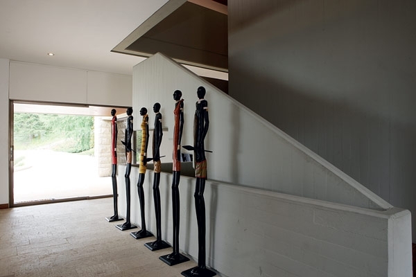 وعُلّقت على هذا الجدار لوحات حجرية، كما برزت من جانب موازٍ أعمال خشبية فنية من الطراز الأفريقي أحضرت من بلادها الأصلية.