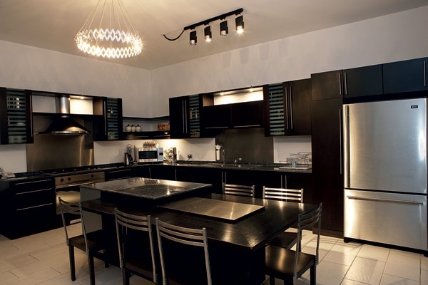وتحققت الانارة من «سبوت» وثريا تتدلى فوق وسط الطاولة.