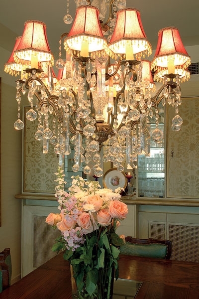 ومع الجدران التي تتواصل مطلية بالباتين في كل غرف المنزل، تتوزع طاولات صغيرة متباعدة من الفيرفورجيه والزجاج تحمل وروداً حمراء وبيضاء وتتغنى بموقعها الهادئ وكأن أحداً لا يعكّر صفاء مكانها!
