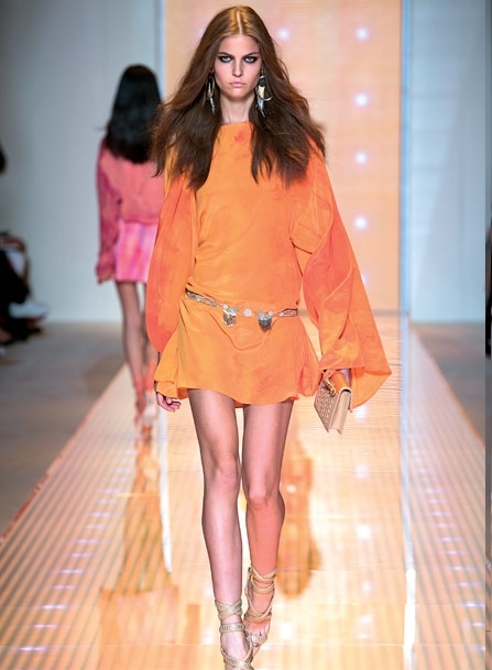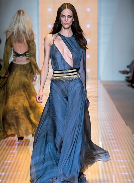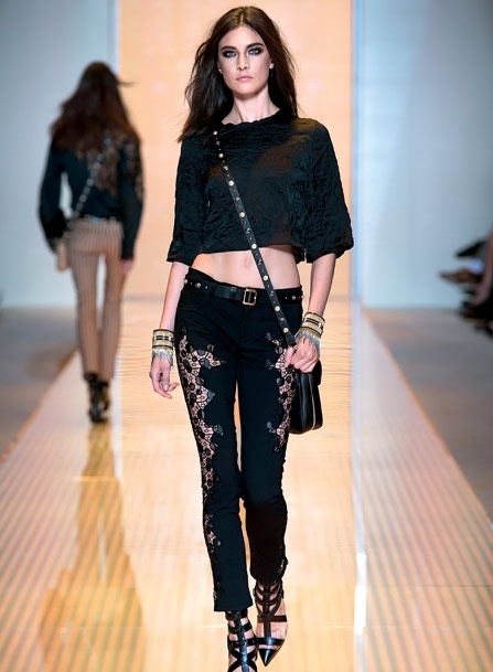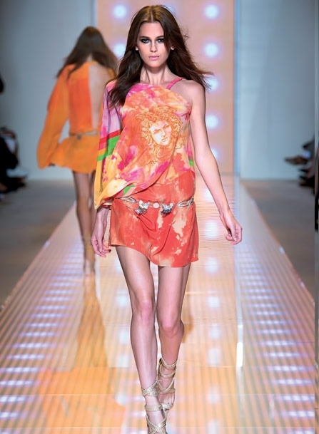 تمّ استلهام مجموعة فرساتشي النسائية لربيع وصيف 2013 من أسلوب الخياطة الدقيقة والمفصّلة مع تفاصيل مستوحاة من الملابس الداخلية الأنيقة. وقد برزت السترات الطويلة ذات القصّات الرجالية المريحة والزخرفة بالدانتيل الرقيقة الناعمة. وتداخلت أقمشة الفساتين القصيرة الحريرية المصبوغة بألوان البرتقالي والأزرق ولون البشرة مع الدانتيل والجلد، كما تم شطب الأقمشة في تصاميم أخرى وربطها مع بعضها بواسطة الدانتيل المتشابكة. وإضافة الى ذلك، تمّ إدخال تصاميم رشيقة تتمتع ببنية أكثر مرونة. من خلال استخدام قماش الكريب والشيفون، فيما تألّق رمز الميدوزا المطبوع على القماش المصبوغ كرايةٍ على الفساتين القصيرة ذات الثنيات المثيرة.