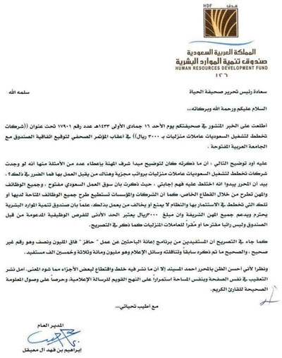 تصريح مدير صندوق تنمية الموارد البشرية للشقيقة «الحياة» الذي أثار الجدل...