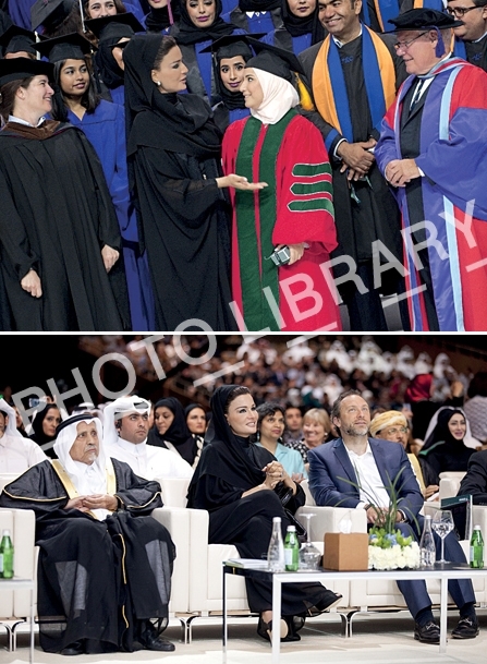 رعت الشيخة موزا بنت ناصر حفل تخريج دفعة 2013 من طلاب مؤسسة قطر وجامعة حمد بن خليفة في مركز قطر الوطني للمؤتمرات.