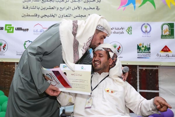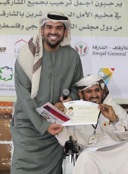 زار الفنان الإماراتي حسين الجسمي "السفير فوق العادة للنوايا الحسنة" مخيم "الأمل" الذي تنظمه مدينة الشارقة للخدمات الإنسانية على أرضها في منطقة اليرموك بالشارقة بمشاركة وفود من دول مجلس التعاون الخليجي، إلى جانب وفد ضيف من جمعية التأهيل المجتمعي من مخيم البداوي للاجئين الفلسطينيين في شمال لبنان. ويقام المخيم للمرة الرابعة والعشرين ويحمل في دورته الحالية عنوان "ابتسامتي في صحتي".