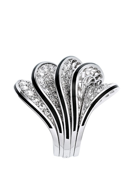 لدى المدينة موعد مع الأماكن المزخرفة، حيث تتألق الهندسة المعمارية برقتها وجمالها. قبة كلاسيكية متجددة، بلون ذهبي يخترقه الضوء حاملاً وعد السماوات المبهرة، ومجوهرات تليق بالأمسية المرتقبة. شاعرية من مواد نفيسة. دوائر وخطوط مكسورة، لآلئ وماسات تصور الحميمية في سرية شفافة. خواتم مقببة تعلوها لؤلؤة أو ماسة، أساور عريضة بزخارف ملولبة. روح باريسية تنبض بالحياة والإغراء والشاعرية التي تتجدد من خلالها أسطورة الأنوثة الأبدية.