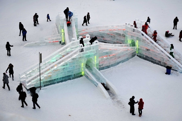 وقد قام أكثر من 10 آلاف شخص ببناء هذه التصاميم الجليديّة الضخمة بأقلّ من 15 يوم. تصاميم تبدو رائعة في النهار، وساحرة في الليل حيث تضيء سماء الصين! وهي عادة تدوم لمدّة شهر، حسب الطقس.