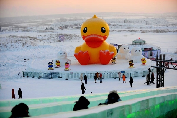 أقامت مدينة هاربن في الصين احتفالاتها بمهرجانها السنويّ للثلج والجليد، وقدّمت "مدينة الجليد" تصاميمها الهندسيّة التي ضمّت هذا العام مواقع تاريخيّة وسياحيّة من مختلف أنحاء العالم، مثل الكولوسيوم في روما والأهرامات، إضافة إلى "البطة" الشهيرة الصفراء للفنّان Florentijn Hofman التي تلفّ بلدان العالم.