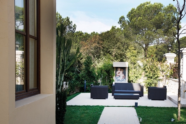 ويلتقي قسم كبير من الحدائق مع واجهات المنزل التي تشرف على مخارج الصالونات. وعند آخر الحديقة وضعت «برغولا» تتوسطها موقدة عصرية.