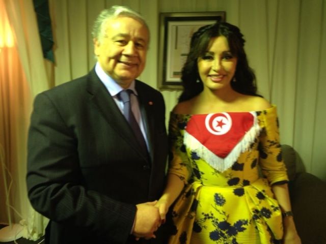 من تونس قدمت لكي تفرح مع كل العرب، استهلّت حديثها الإيجابي بـ "إلى الأمام يا تونس". ردّدت كلمات أغنية "الحومة العربي" فحلّق العلم التونسي وسط الحضور وامتزج بدموع صاحبته، فطلبت لطيفة من حاملته أن تعطيها العلم وأن تتوقف عن البكاء قائلة: "ما تبكيش، ما تزيدي عليّ...". وضعت لطيفة العلم على صدرها وفشلت في ضبط دموعها، وأدّت الأغنية بتأثّر وكاد صوتها يختفي حين بكت.