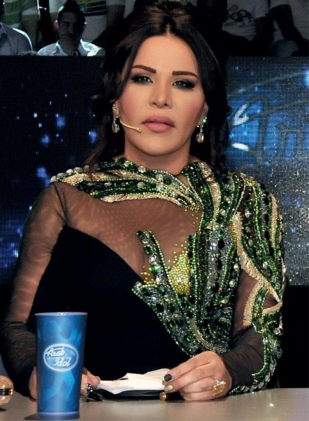 تنظر إلى زوجها السيّد مبارك الهاجري وتضحك قائلة : موجود عندي، هو غالٍ على قلبي. مبارك اشتراه لي وكان من المفترض أن أضعه في حلقة الليلة من Arab Idol لكنّي نسيت.