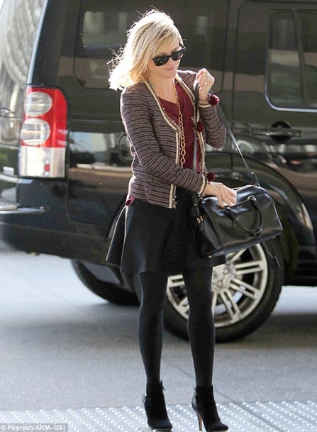 اختارت الممثلة الأميركية ريز ويذرسبون (37 عاماً) سترة من شانيل لحضور لقاء مهني. أتمت بطلة Legally Blonde - التي تؤدي دور أميركية تساند أربعة لاجئين سودانيين في فيلم The Good Lie المنتظر - إطلالتها مع حقيبة سوداء كلاسيكية من Saint Laurent انسجاماً مع جزمة الكاحل المثالية مع تنورتها السوداء.