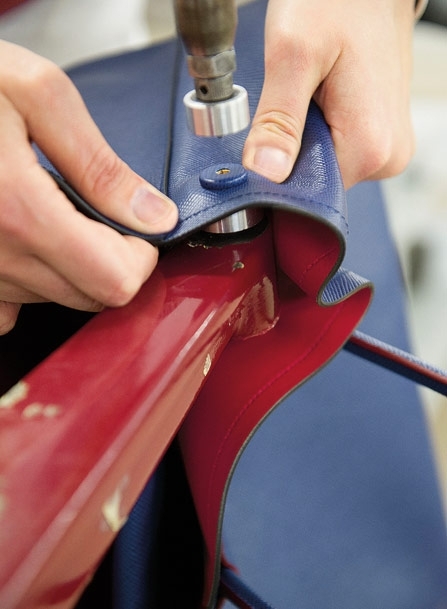 هذه الحقيبة مصنوعة من الجلد الفاخر من الداخل والخارج في درجتين مختلفتين من اللون نفسه أو في لونين متناقضين يتلاءمان بشكل مدهش كالأحمر والأزرق. هذه الحقيبة الثنائية اللون تتميّز بتفاصيل تترجم الحرفية العالية لصانعيها كالفاصل الداخلي الذي يحمل جيباً ذا غطاء يغلق بقفل مغناطيسي خفيّ، بالإضافة إلى محفظة داخلية يمكن إخراجها واستخدامها كحقيبة صغيرة. وبفضل هذين العنصرين يصبح من السهل ترتيب المحتوى بطريقة عملية. تزين هذا التصميم أزرار جميلة على الجانبين يكمّلها لوحة إسم معدنية جديدة ورباط مع مشبك. إنها حقيبة فريدة وتتميّز بخفّة بالغة.